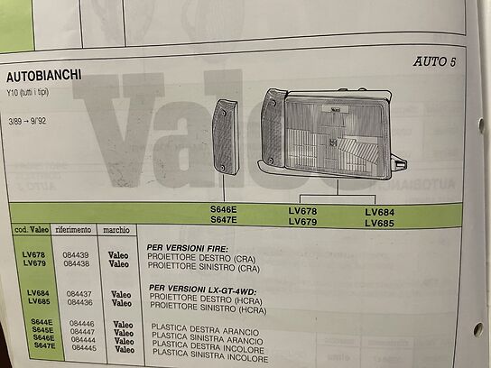 PROIETTORE ANTERIORE SINISTRO VALEO COD. 84438 LV679