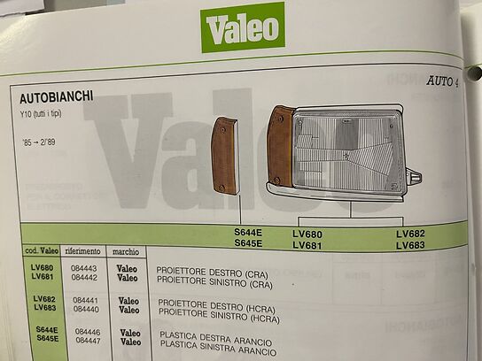 PROIETTORE ANTERIORE SINISTRO VALEO COD. 84440 LV683
