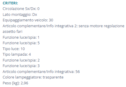 PRIETTORE ANTERIORE DX A.R. 164 NUOVO VALEO COD. 063066 .. L620E