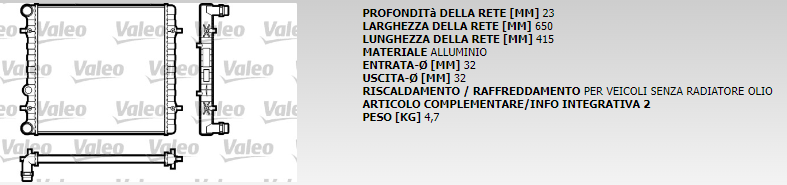 RADIATORE MOTORE AVA COD. VALEO 731606