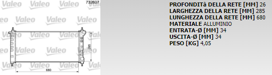 RADIATORE MOTORE NUOVO VALEO COD. 732607